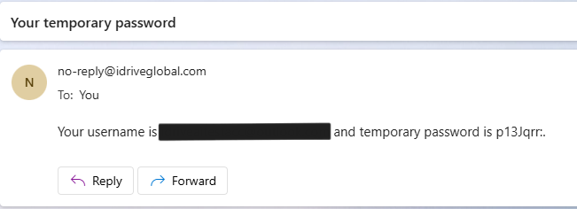P.S. if you do not know if the user was migrated, check the old IRIS account and see if they had an account there; if they do, they were migrated - they had their account created in Nexus manually by someone. In this case they will receive an automatic email from no-reply@idriveglobal.com under the following format. The password has 8 characters: upper case and lower case letters, at least a number and one special character. The last . at the end is not part of the password.